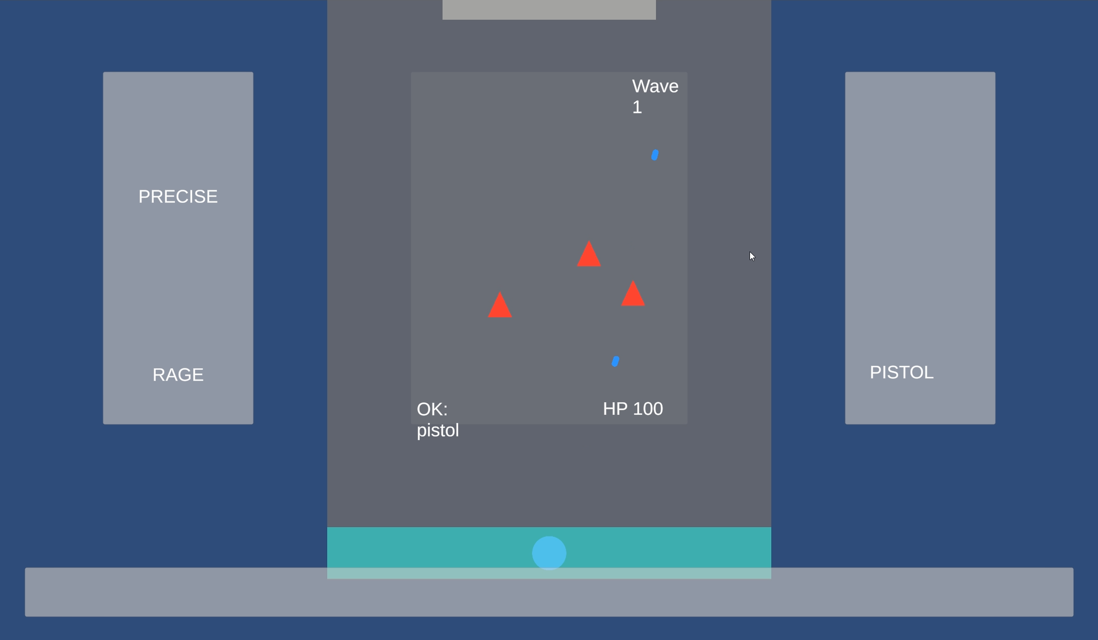 You stand at the bottom of the screen like a turret, facing waves of incoming enemies. To attack, you simply type: type a weapon's name to fire it, or type a buff to enhance your next shot. After surviving each wave, you choose one of three upgrades to gradually build a playstyle that suits you.